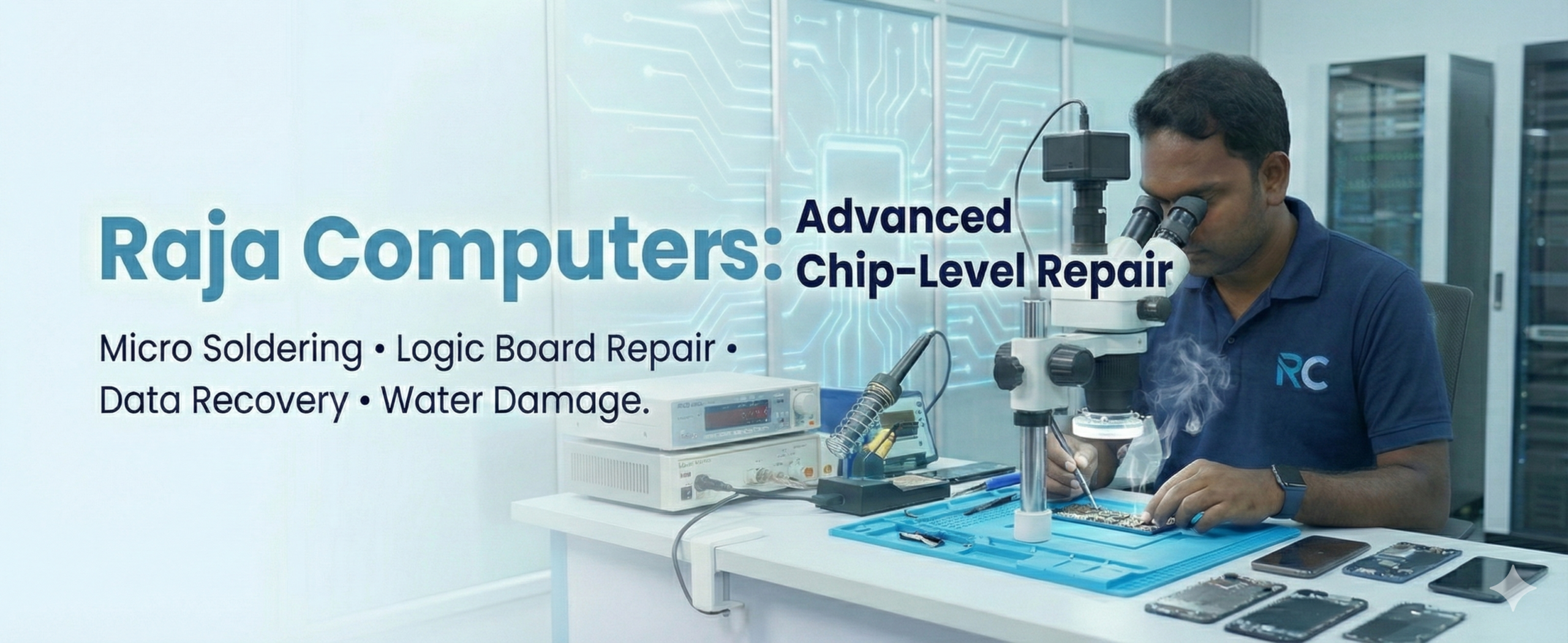 Advanced motherboard chip-level diagnosis and repair by trained technicians using professional tools.”